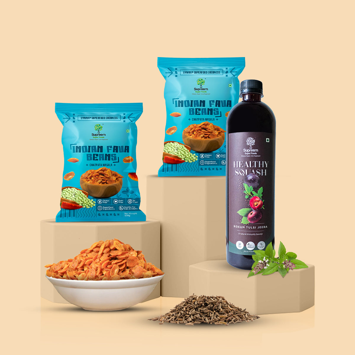 Kokum Tulsi Jeera Squash + India Fava Beans pack of 2